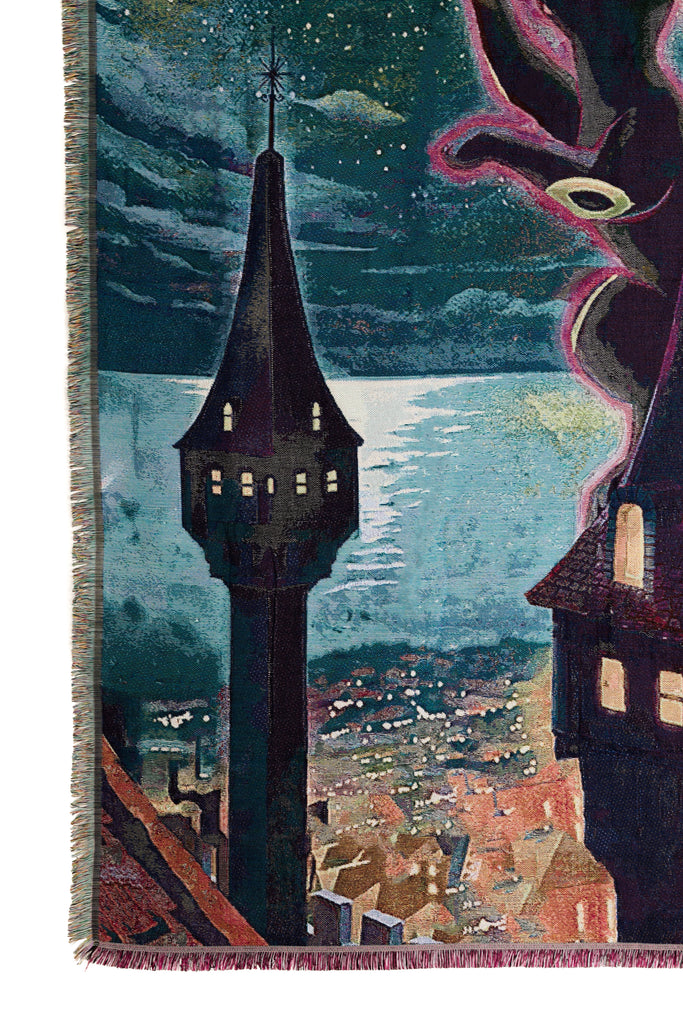Moonbreon Tapestry in stock until it sells out. Can be used as a wall hanging, bed cover, or throw.